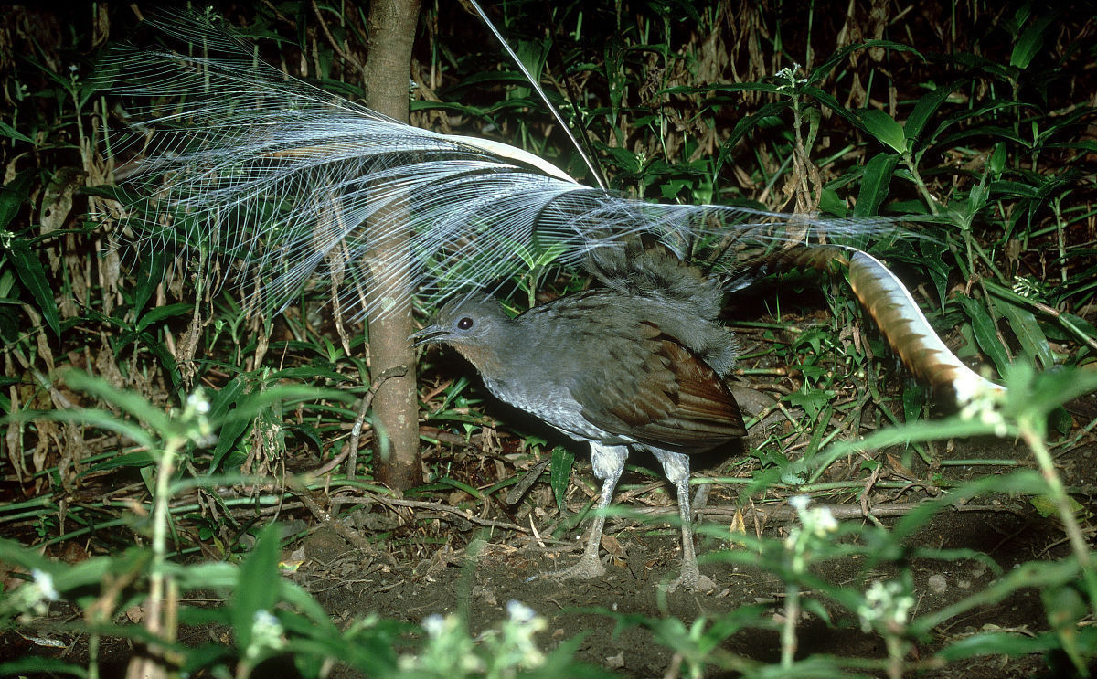 Lyrebird mimicry is culturally transmitted, passed down from generation to generation. When lyrebirds were introduced to Tasmania in the 1930s, successive generations continued to mimic the eastern whipbird—a species not found on the island—for decades, though the imitation became distorted over time. Captive lyrebirds often incorporate human-made sounds into their repertoire: Echo, a 7-year-old male at Sydney’s Taronga Zoo, imitates a baby’s cry, a power drill, and the zoo’s fire alarm, including the “evacuate now” announcement. “It would be difficult for these birds not to duplicate some of the sounds they hear in a zoo setting,” says unit supervisor Leanne Golebiowski.